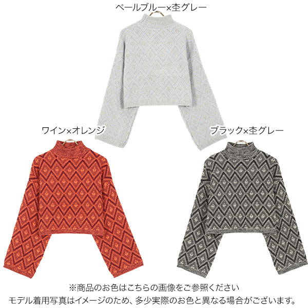特別セール★ジャガード編みショート丈ハイネックデザインニットプルオーバートップス [C5713] レディース セーター ゆったり 秋冬 柄 体型カバー レイヤード おしゃれ 大人 きれいめ カジュアル 上品 長袖 柄物 総柄 デザインニット