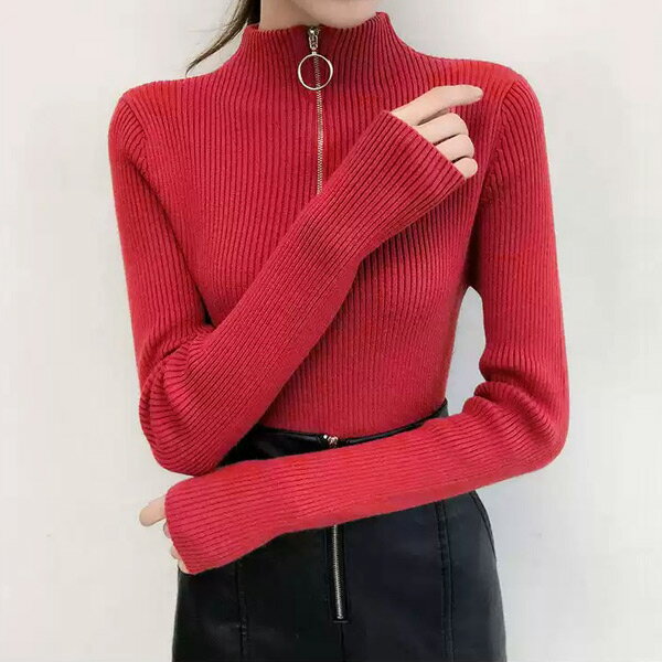 【即納あり】 ハーフジップ ニット リングファスナー ジップアップ ハイネック 黒 赤 ダンス 衣装 ヒップホップ コスチューム 韓国ファッション 大きいサイズ 個性的 服