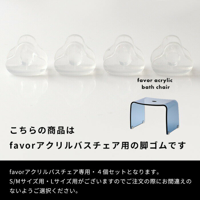 ●商品の詳細● 品 名 favor フェイヴァアクリルバスチェア用脚ゴム 4個組 サイズ S・Mサイズ用 / Lサイズ用 入 数 4個組 ■注意点 ※フェイヴァアクリルバスチェア専用です。
