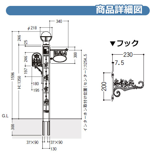 カラー ブラック(ネームシール文字:ゴールド) 仕様 機能ポール(ポスト:前後開き/LED照明搭載:明るさセンサ付き/インターホンスペース/表札:ネームシール付属/フック付属) 材質 パネル:アルミ鋳物/側面:アルミ形材 セット内容 ■ポール本体:ミッキーC型 ■サイン:ミッキーC型(シール付) ■ポスト:ミッキーC型 ■ポスト台座:E型 ■照明:LHK-1型 ■フック:ミッキーC型 ■インターホン台座:正面取付用(4型用) 備考・注意 ※受注生産商品のため、配送には実働約14日〜20日程度必要な場合があります。